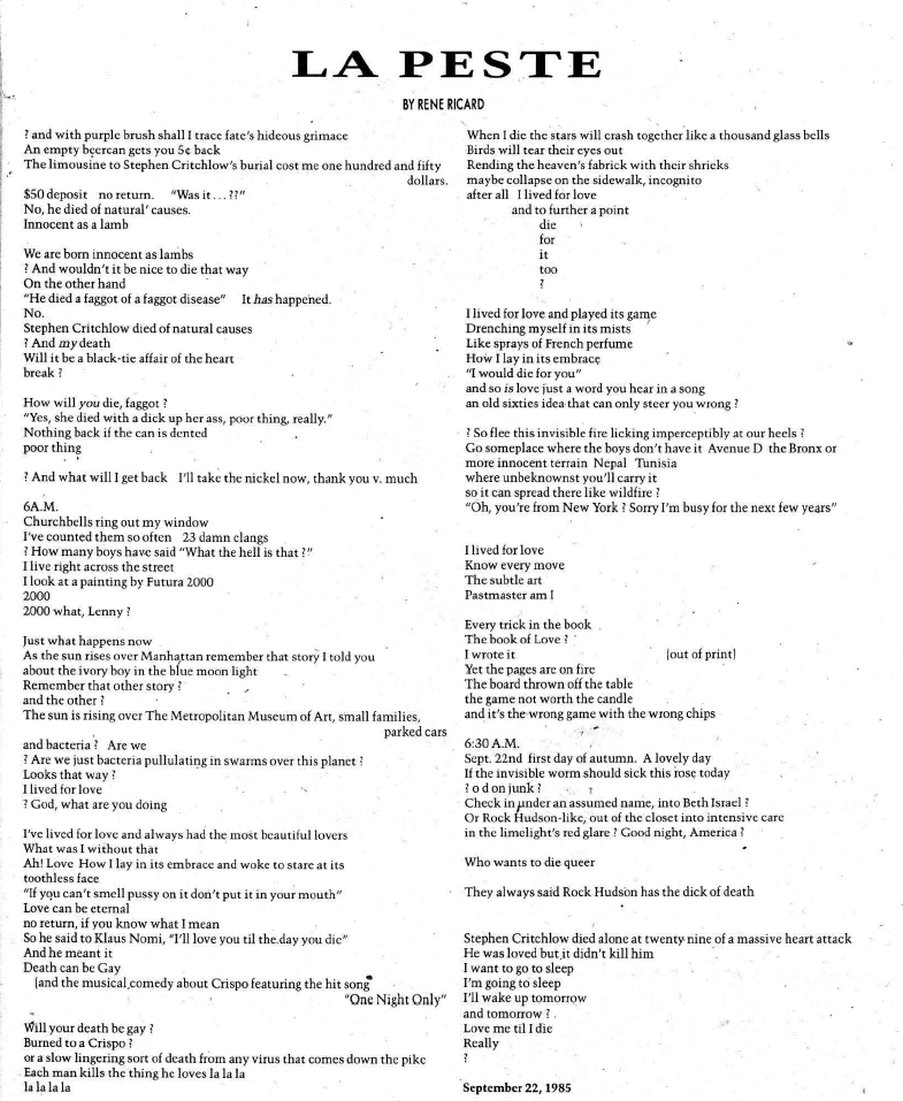 Unbeknownst to perhaps all in attendance, this was to be the last public performance of Rene Ricard's life.